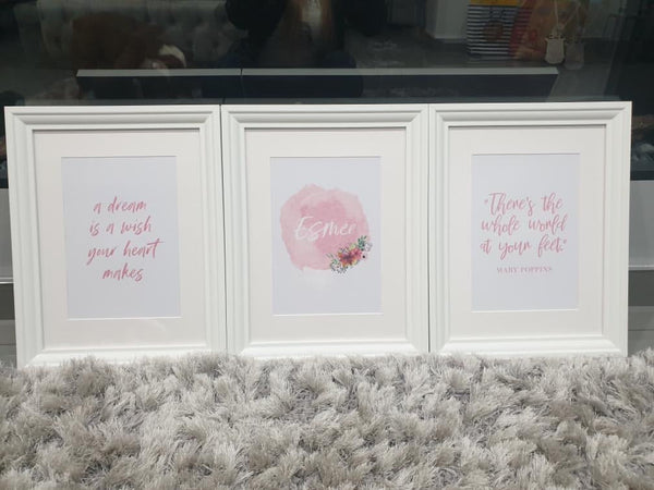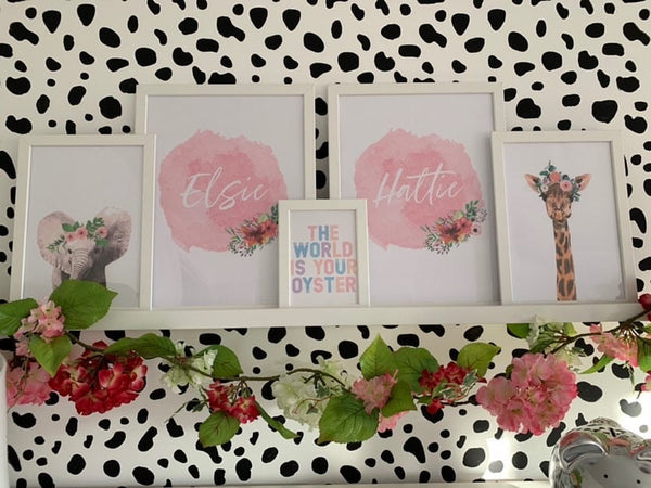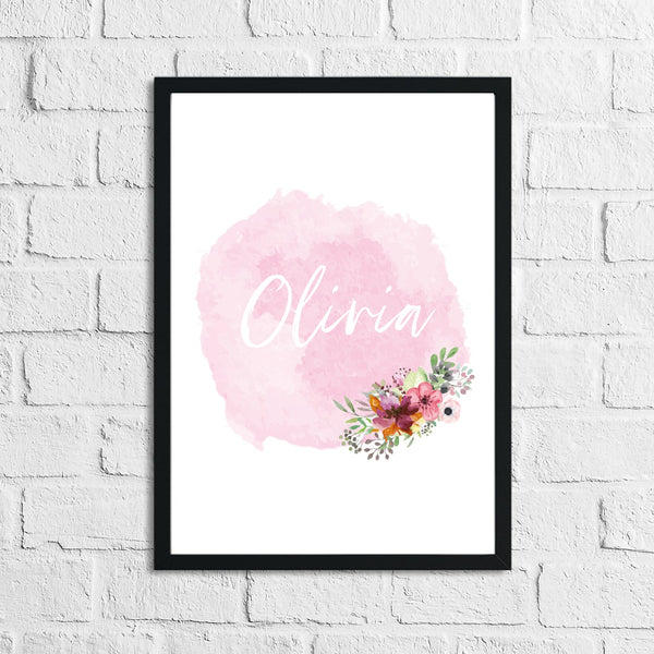 Personalised Pink Watercolour Name Floral Children's Room Wall Decor Print