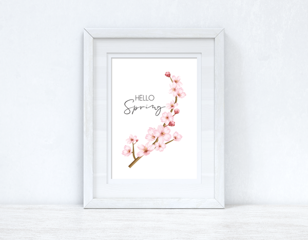 Hello Spring Cherry Blossom Spring Seasonal Wall Home Decor Print